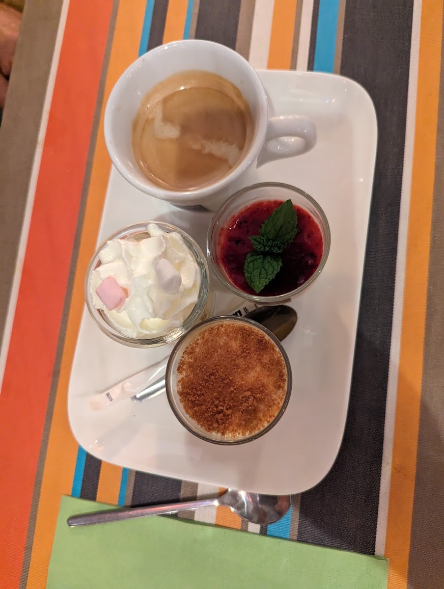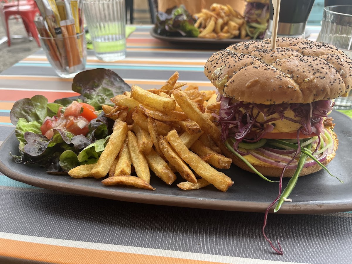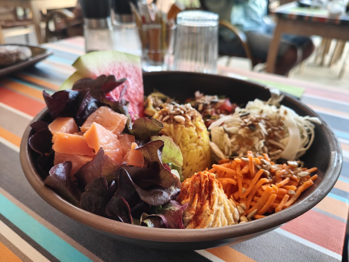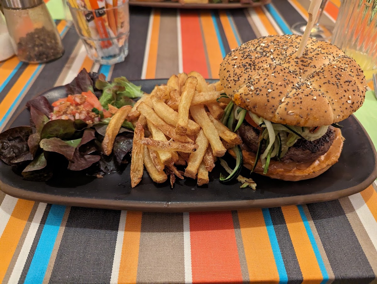 Nachdem wir am Abend zuvor ohne Reservierung keinen Tisch bekommen haben, reservierten wir gleich einen Platz für den nächsten Abend. Das Restaurant ist klein und außen bei den Sitzplätzen schön dekoriert. Drinnen ist ein süßer Kunstverkaufsraum. Im Großen und Ganzen gibt es hier zwei Signature-Gerichte zu gerade noch passablen Preisen: Bowls und Burger. Also testeten wir beides (hat fast jeder so an den Nachbartischen gemacht). Der Burger Le Karantes war gut - nicht der beste Burger jemals - aber wirklich gut gebraten und kein Standardbelag. Die Pommes dagegen waren auffallend lecker, vermutlich selbstgemacht. Die Buddha-Bowl hatte dagegen alles, was ein Top-Gericht braucht: Jede Kleinigkeit in der Bowl war super abgeschmeckt und als Gesamtes harmonierte alles perfekt miteinander - maximale Punktzahl! Getrunken haben wir zwei Sangria, die auch super geschmeckt haben. Fazit: Nettes Ambiente und sehr gutes Essen, wofür wir gerne 50€ bezahlt haben. Wir würden wieder hingehen und beim nächsten Mal wohl beide Bowls bestellen.